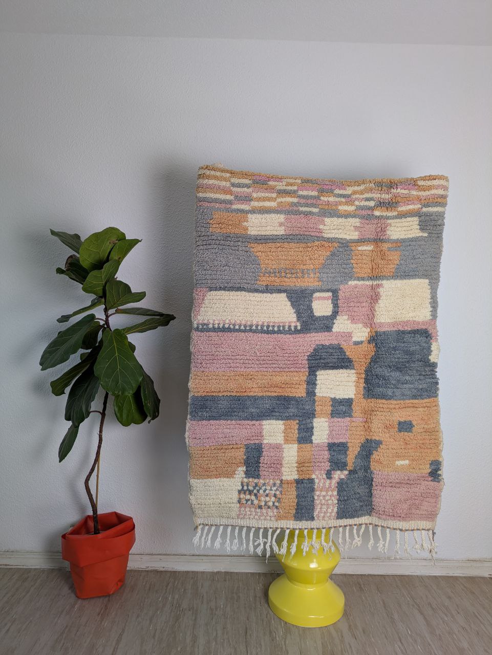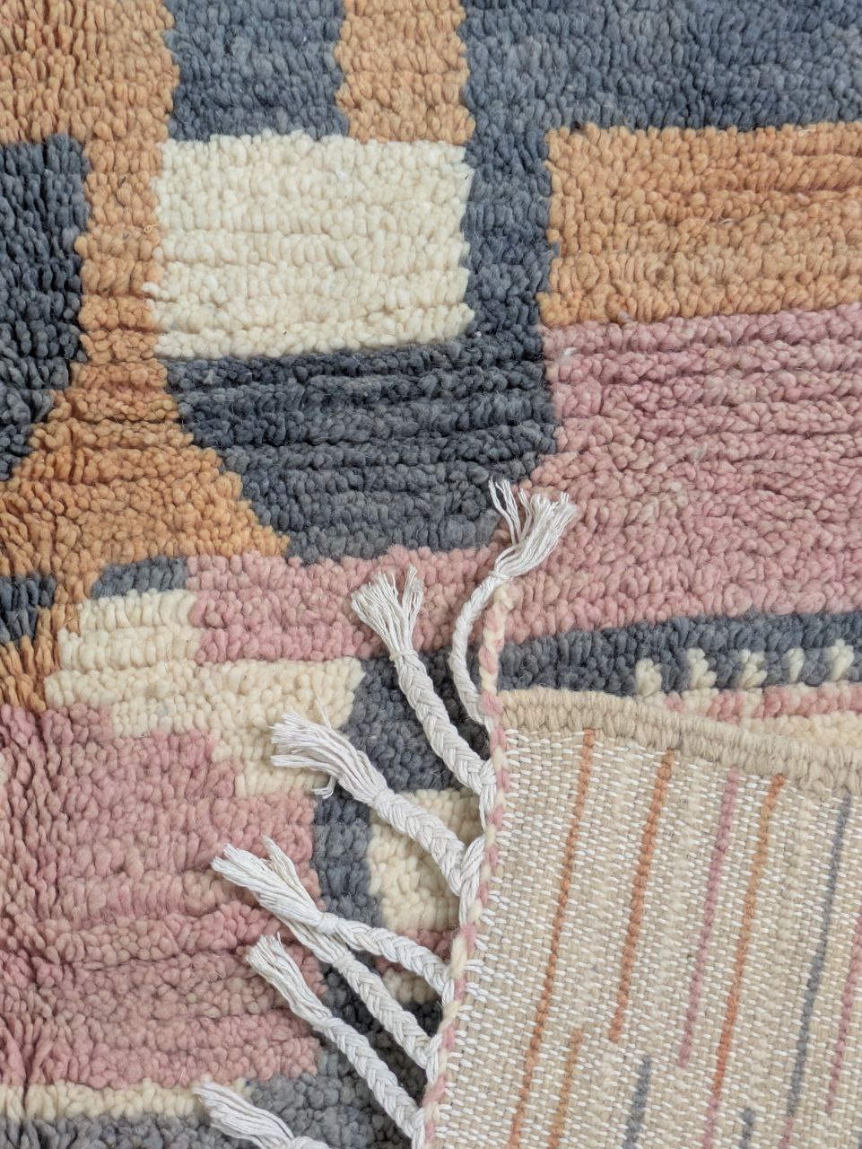 The process of creating a berber carpet is very long. Each carpet is made on a traditional loom, which gives it a unique personality and charm. Slight imperfections and variations in colour are an integral part of its history and only add to its beauty and value. This differentiates it from items that are mass-produced and gives it character.