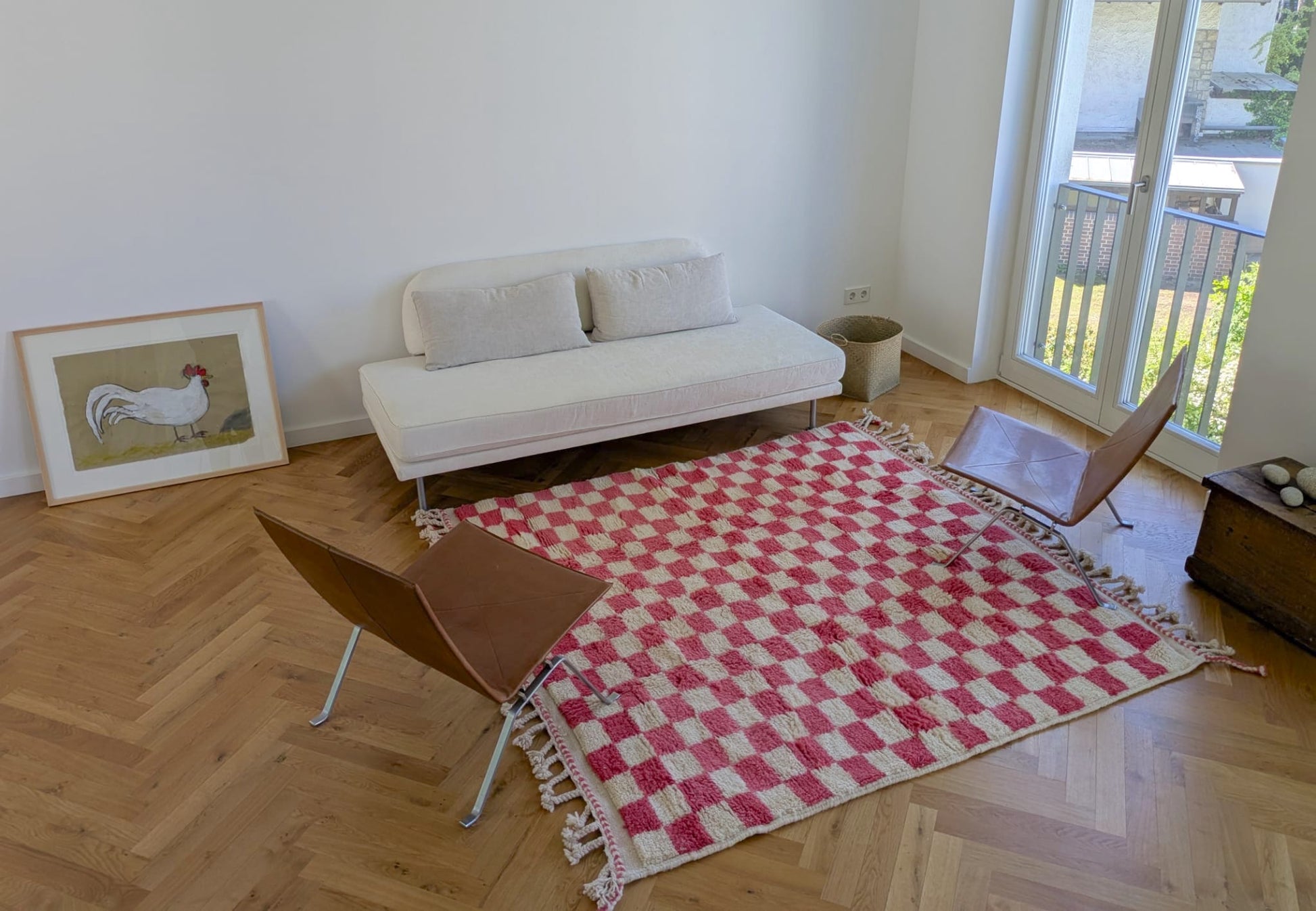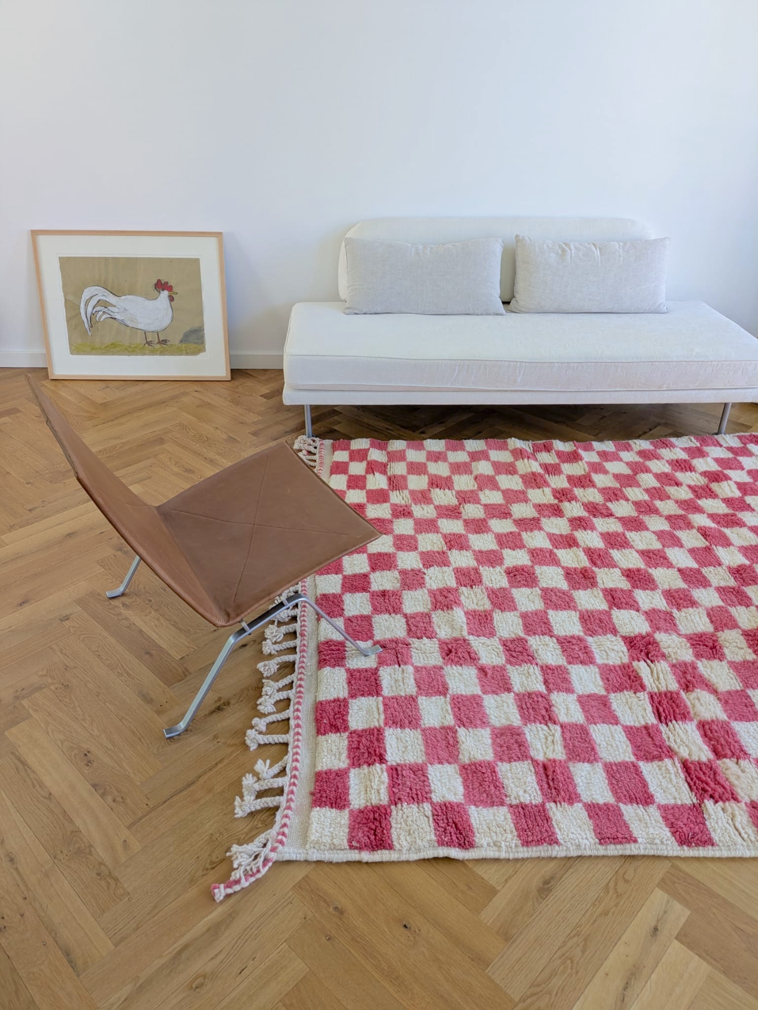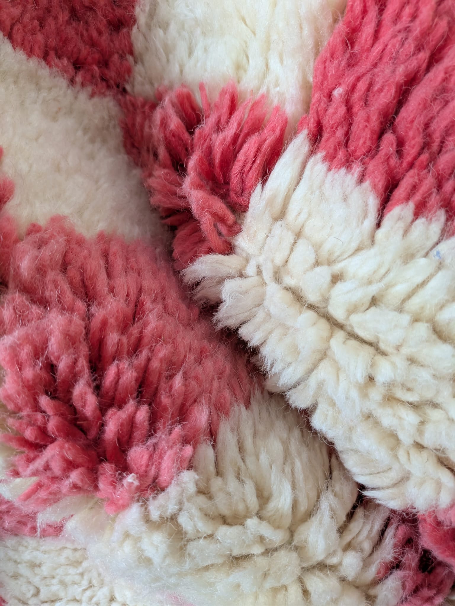 The process of creating a berber carpet is very long. Each carpet is made on a traditional loom, which gives it a unique personality and charm. Slight imperfections and variations in colour are an integral part of its history and only add to its beauty and value. This differentiates it from items that are mass-produced and gives it character.