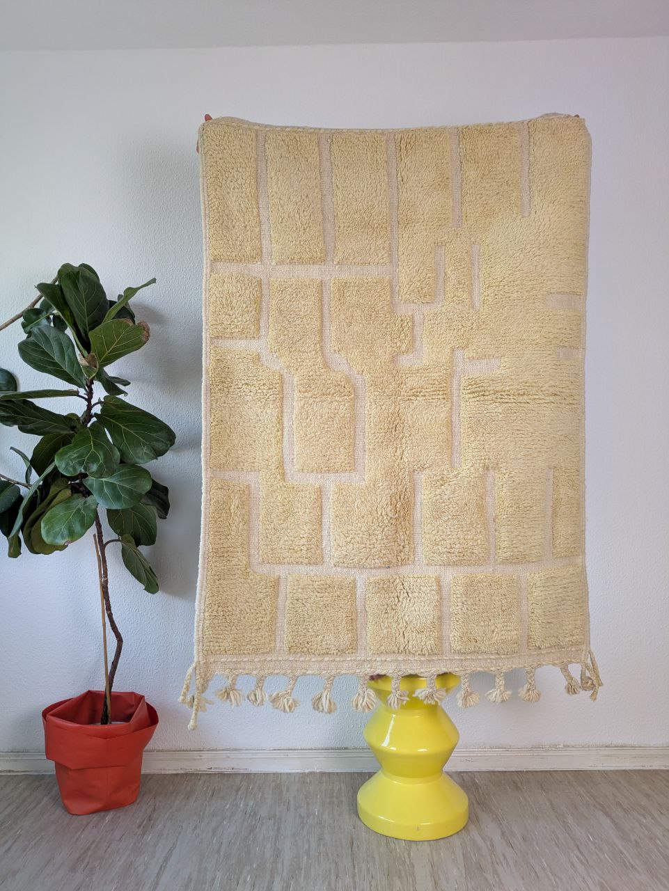 The process of creating a berber carpet is very long. Each carpet is made on a traditional loom, which gives it a unique personality and charm. Slight imperfections and variations in colour are an integral part of its history and only add to its beauty and value. This differentiates it from items that are mass-produced and gives it character.