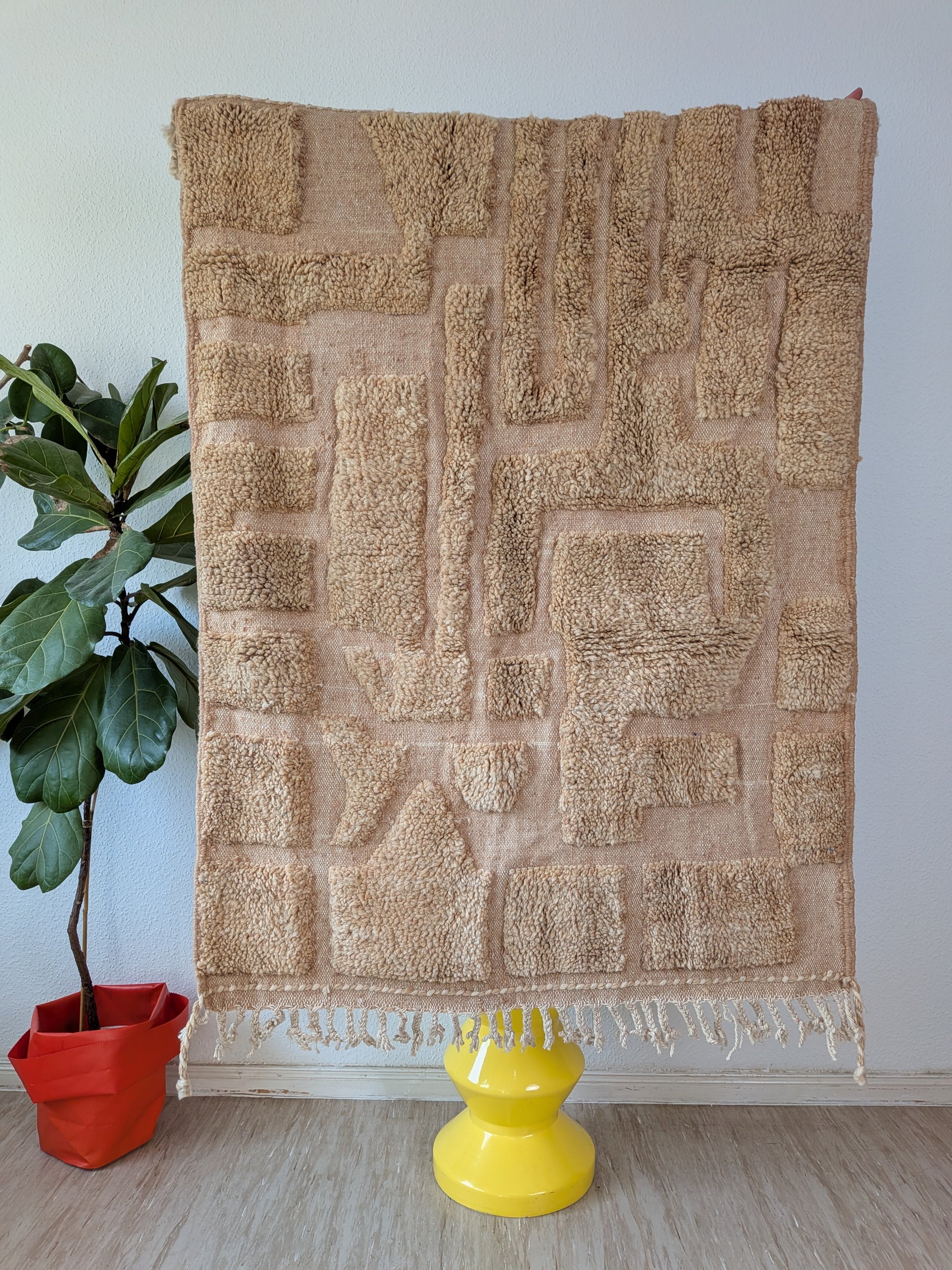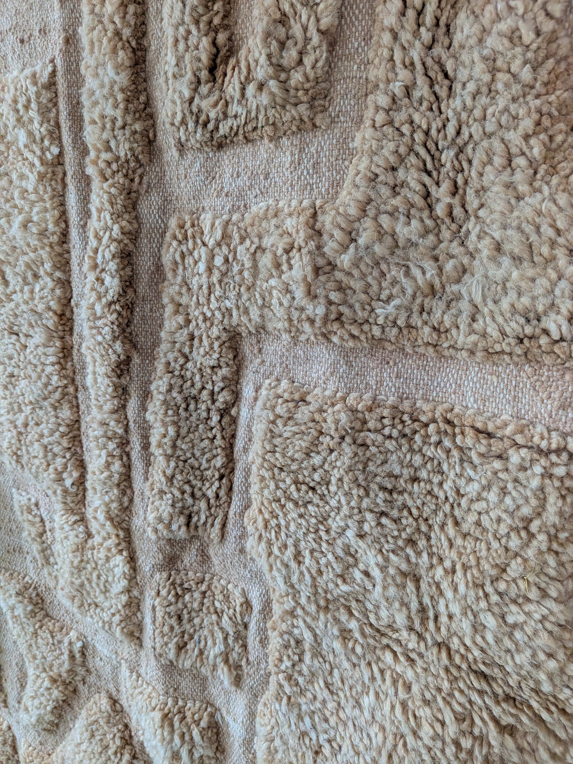 The process of creating a berber carpet is very long. Each carpet is made on a traditional loom, which gives it a unique personality and charm. Slight imperfections and variations in colour are an integral part of its history and only add to its beauty and value. This differentiates it from items that are mass-produced and gives it character.