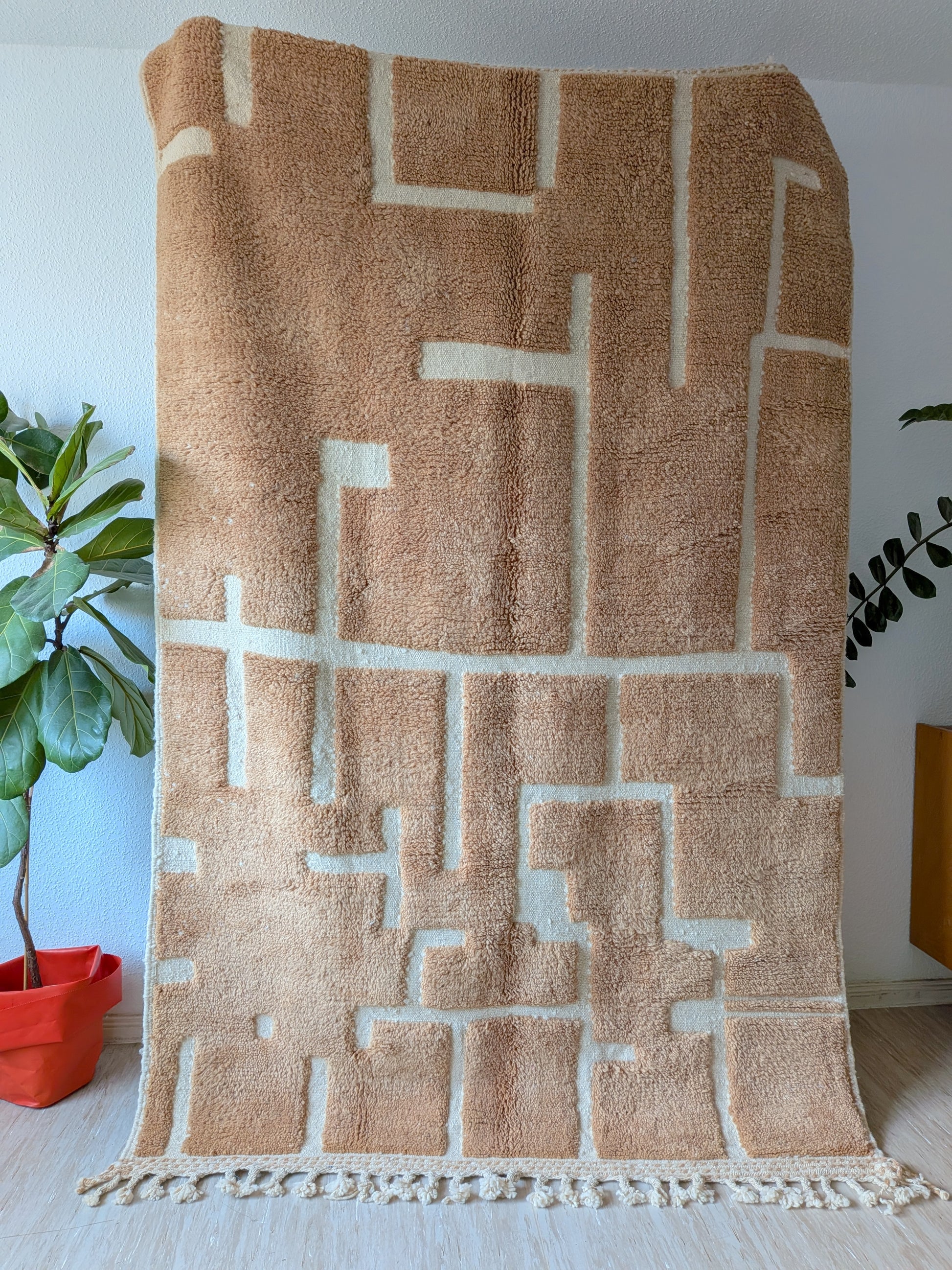 The process of creating a berber carpet is very long. Each carpet is made on a traditional loom, which gives it a unique personality and charm. Slight imperfections and variations in colour are an integral part of its history and only add to its beauty and value. This differentiates it from items that are mass-produced and gives it character.