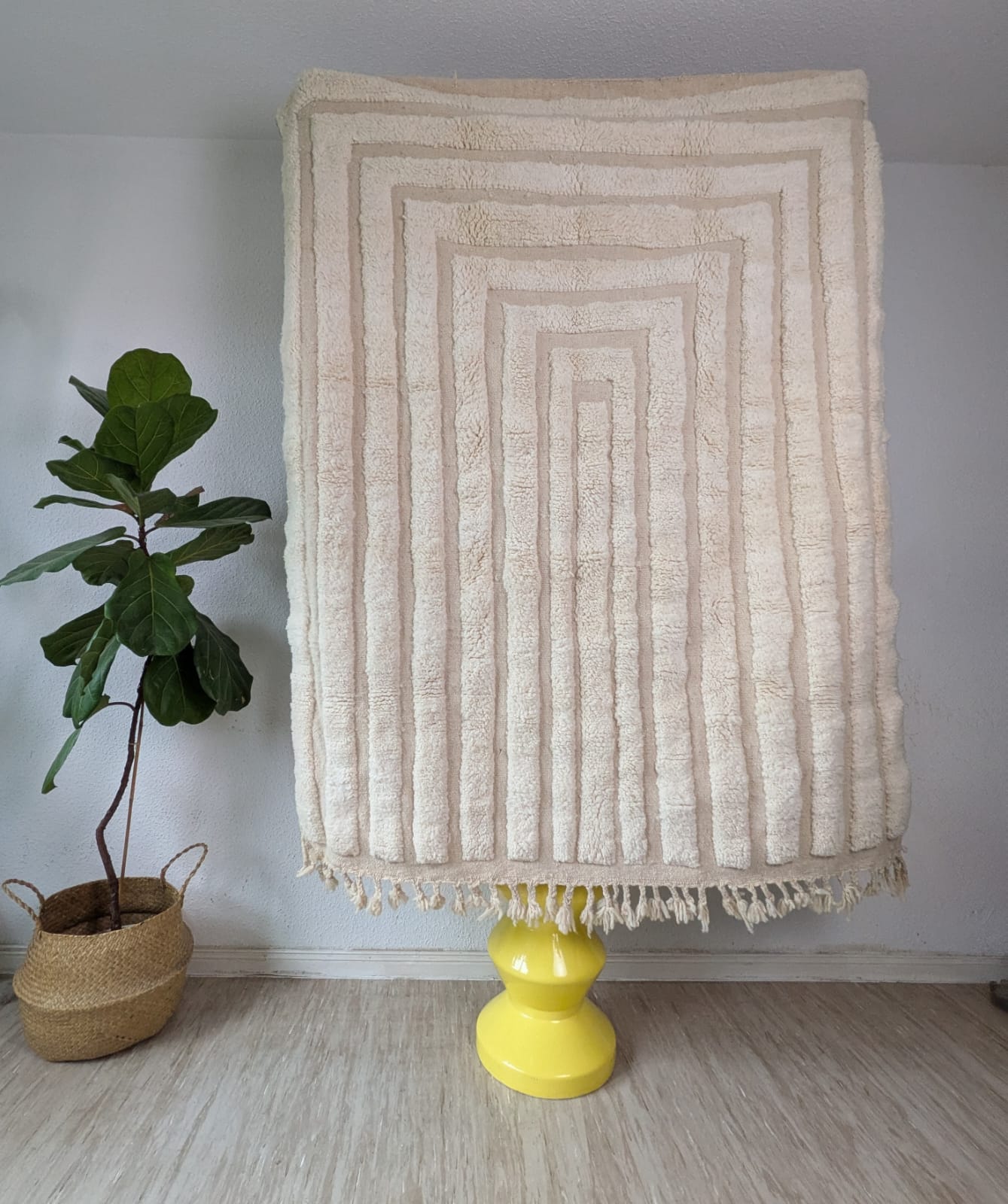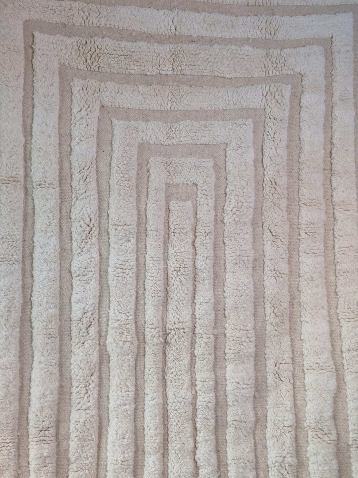 The process of creating a berber carpet is very long. Each carpet is made on a traditional loom, which gives it a unique personality and charm. Slight imperfections and variations in colour are an integral part of its history and only add to its beauty and value. This differentiates it from items that are mass-produced and gives it character.
